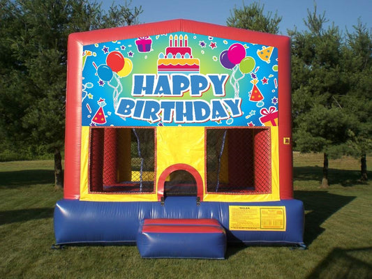 Select from one of dozens of different bounce house banner designs. Birthdays, graduations, holidays, etc.